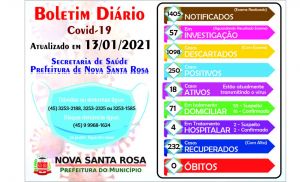 Ao todo, 232 pessoas já se recuperaram da Covid-19 no município nova santa-rosense. Não há óbitos registrados pela doença.