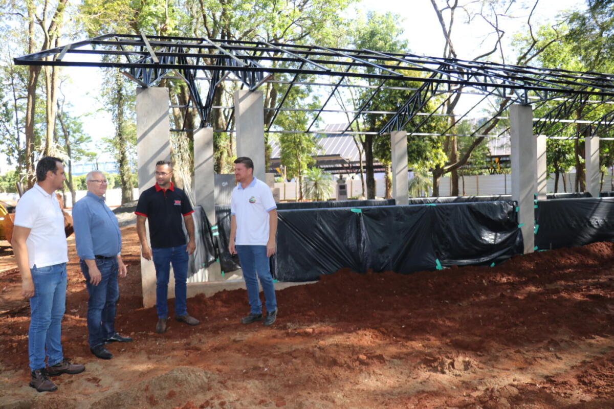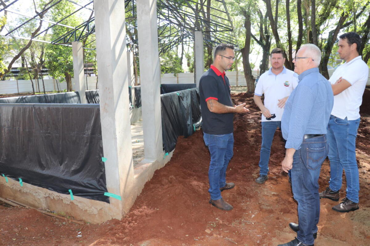 O prefeito Mano e vice Nodari, secretário de Planejamento, Lucas Blatt, juntamente com Welinton Marcos Moura da empresa vencedora do processo licitatório acompanham o andamento dos trabalhos.