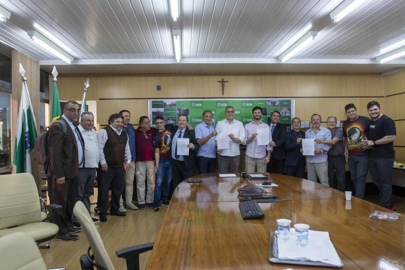 Na tarde nesta segunda-feira (18), a Prefeitura de Toledo foi palco da sanção de um conjunto de leis que fortalecem a área cultural e educacional do município. O ato foi conduzido pelo prefeito Mario Costenaro, ao lado do vice-prefeito Lucio De Marchi, vereadores e representantes da sociedade civil.