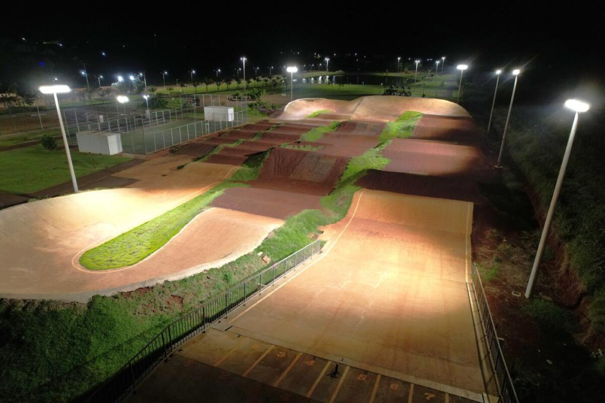 A pista de bicicross, que foi inaugurada em 2022, também recebeu iluminação.