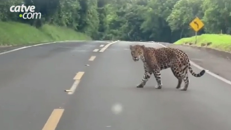 A onça-pintada Peter foi flagrada na tarde de sexta-feira (24) passeando pelo Parque Nacional do Iguaçu.