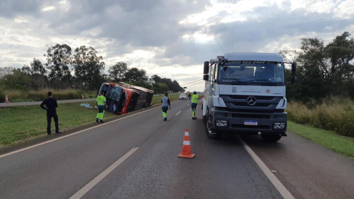O ônibus trafegava no sentido Foz do Iguaçu/Cascavel, quando tombou no canteiro central. Seis pessoas tiveram ferimentos leves e foram atendidas por socorristas do Siate e do Samu.