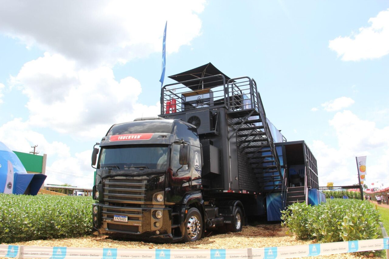 Para cativar a atenção dos visitantes, os expositores do Show Rural 2022 investiram em diferentes intervenções nos estandes e uma delas é um estande em formato de ônibus. A invenção, parte do espaço montado pela Adama na mostra de tecnologia, oferece um mezanino com visão panorâmica para todo o parque.