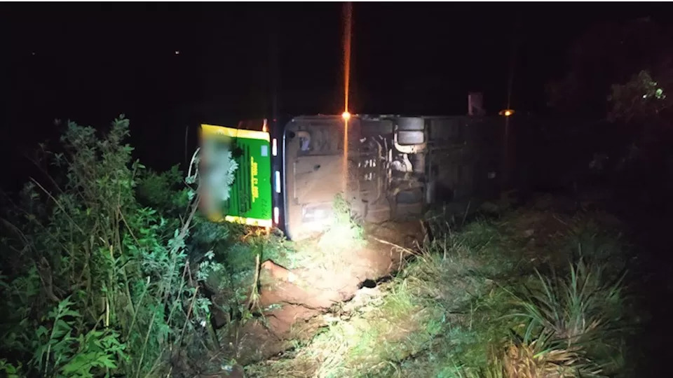 Com a força do impacto, o coletivo saiu da pista e tombou em ribanceira às margens da rodovia.