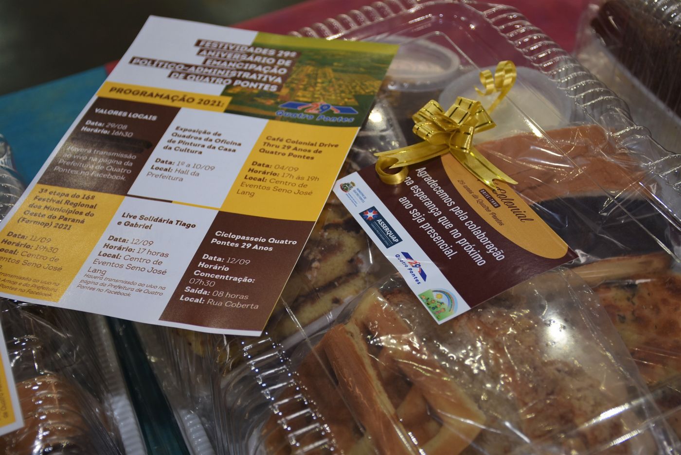 Uma experiência inovadora, desafiadora e de superação. Assim avalia a organização do Café Colonial Drive Thru 29 Anos de Quatro Pontes, idealizado pelo Centro Municipal de Educação Infantil (Cmei) Cantinho Feliz e a Associação de Servidores Públicos do Município de Quatro Pontes (Asserquap), mediante o apoio da Secretaria de Educação, Cultura e Esportes. A venda de 200 kits resultou no lucro de R$ 2.594,12. O valor será dividido entre o Cmei e a Assesquap.