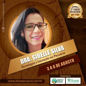 A palestra de abertura do 7º Show Pecuário 2021 será sobre Inovação e Tecnologia no Agro. Quem conduzirá a apresentação é a doutora Sibelle Silva, diretora de Inovação do Ministério da Agricultura, Pecuária e Abastecimento (Mapa). O evento será novamente on-line e totalmente gratuito, assim como em 2020, de terça (03) a sexta-feira (06), das 19h30 às 21 horas, transmitido pelo canal do Youtube da TV Tarobá e pelo Portal Sou Agro.