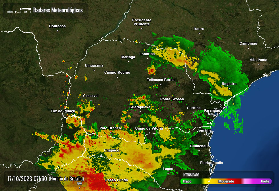 Nesta terça-feira (17), a instabilidade continua a ser a protagonista do clima em todo o Estado do Paraná, à medida que um fluxo de umidade proveniente do Norte do Brasil se alinha a um sistema frontal que se posiciona sobre o oceano. O resultado é a ocorrência de chuvas em vários momentos do dia, com o alerta de risco elevado para tempestades isoladas.