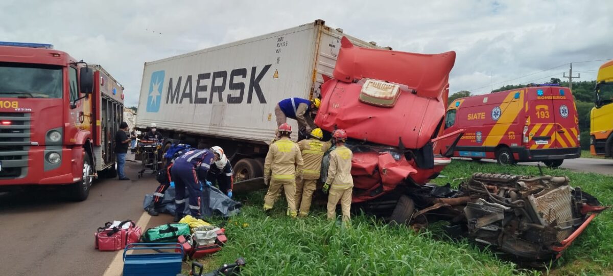 A passageira de um caminhão morreu em grave acidente registrado na BR-163, em Toledo, na manhã desta quinta-feira (6). A situação aconteceu próximo ao Rio Toledo. Um homem também ficou ferido.