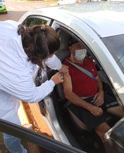 Pato Bragado está entre os primeiros municípios que aderiram à campanha do Governo do Estado Paraná para vacinar os grupos prioritários contra a Covid-19, no fim de semana. Já no último sábado (27), 100 pessoas da faixa etária de 71 até os 74 anos foram vacinadas, em uma ação de intensiva, convocada pelo prefeito Leomar Rohden, o Mano e vice-prefeito, secretário de Saúde, John Nodari.