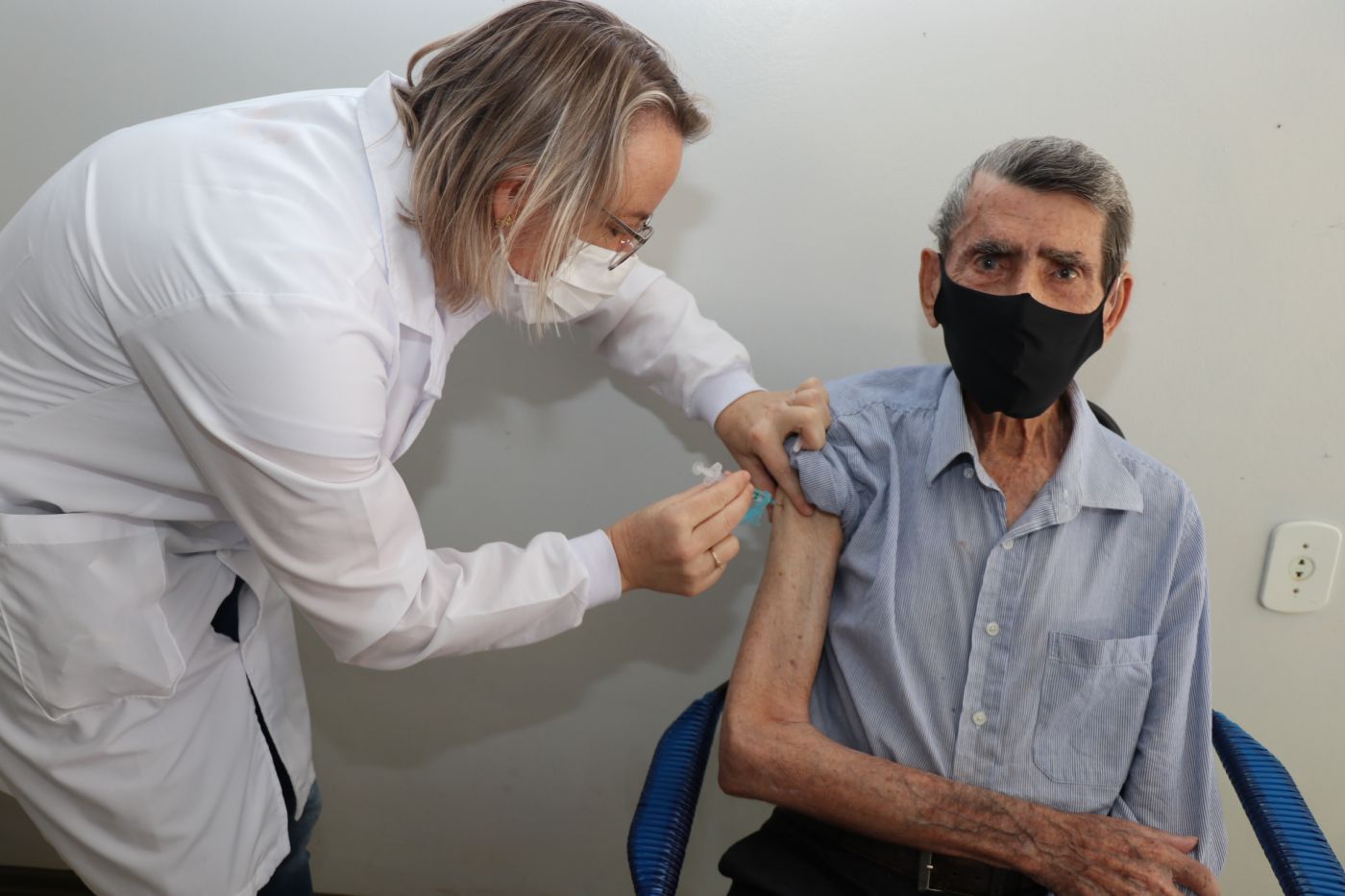 Aos 92 anos, Leo Pedro Breunig está entre os idosos que recebeu a vacina em casa. A esposa, Clara de 82 anos, disse que por ser hipertenso e diabético, se sente aliviada pelo marido e ansiosa para ser imunizada, considerando que possivelmente o grupo da sua faixa etária será o próximo e ela, que apresenta muita disposição, responde pelas tarefas de casa e a saúde do casal.