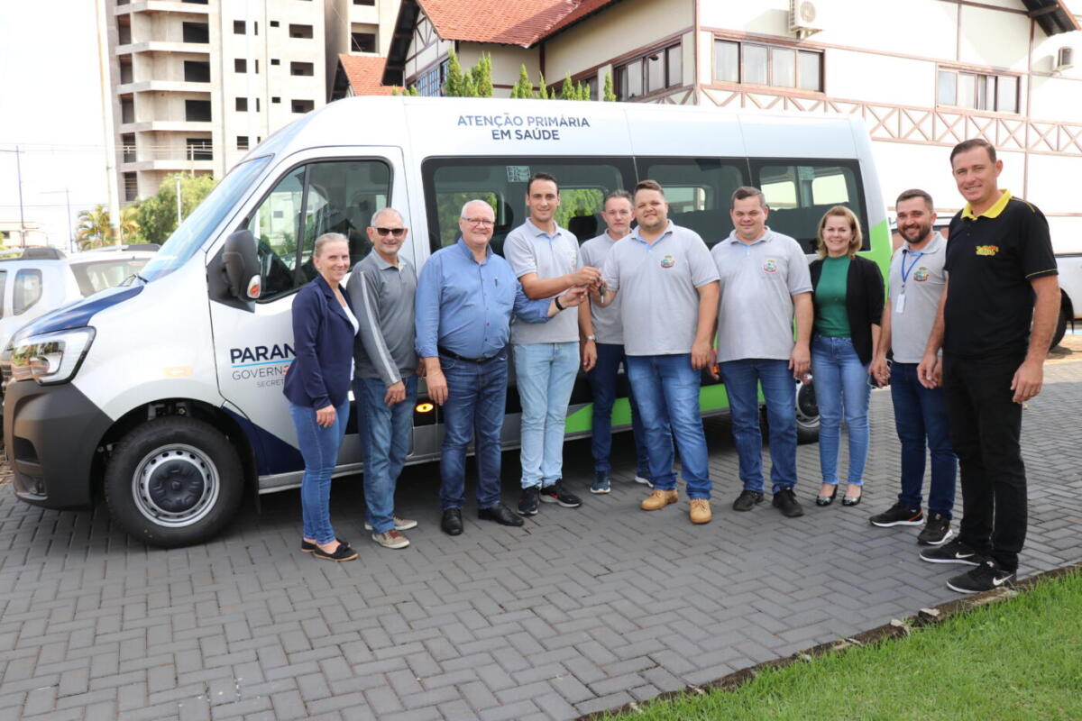 No ato de entrega realizado em frente à prefeitura, o parlamentar foi representado pelos vereadores Egídio Rodrigues, Cleonice Strenske e Maurício Lunkes que repassaram às chaves do veículo ao prefeito Leomar Rohden, o Mano, vice John Nodari e secretária de Saúde, Neili Koch.