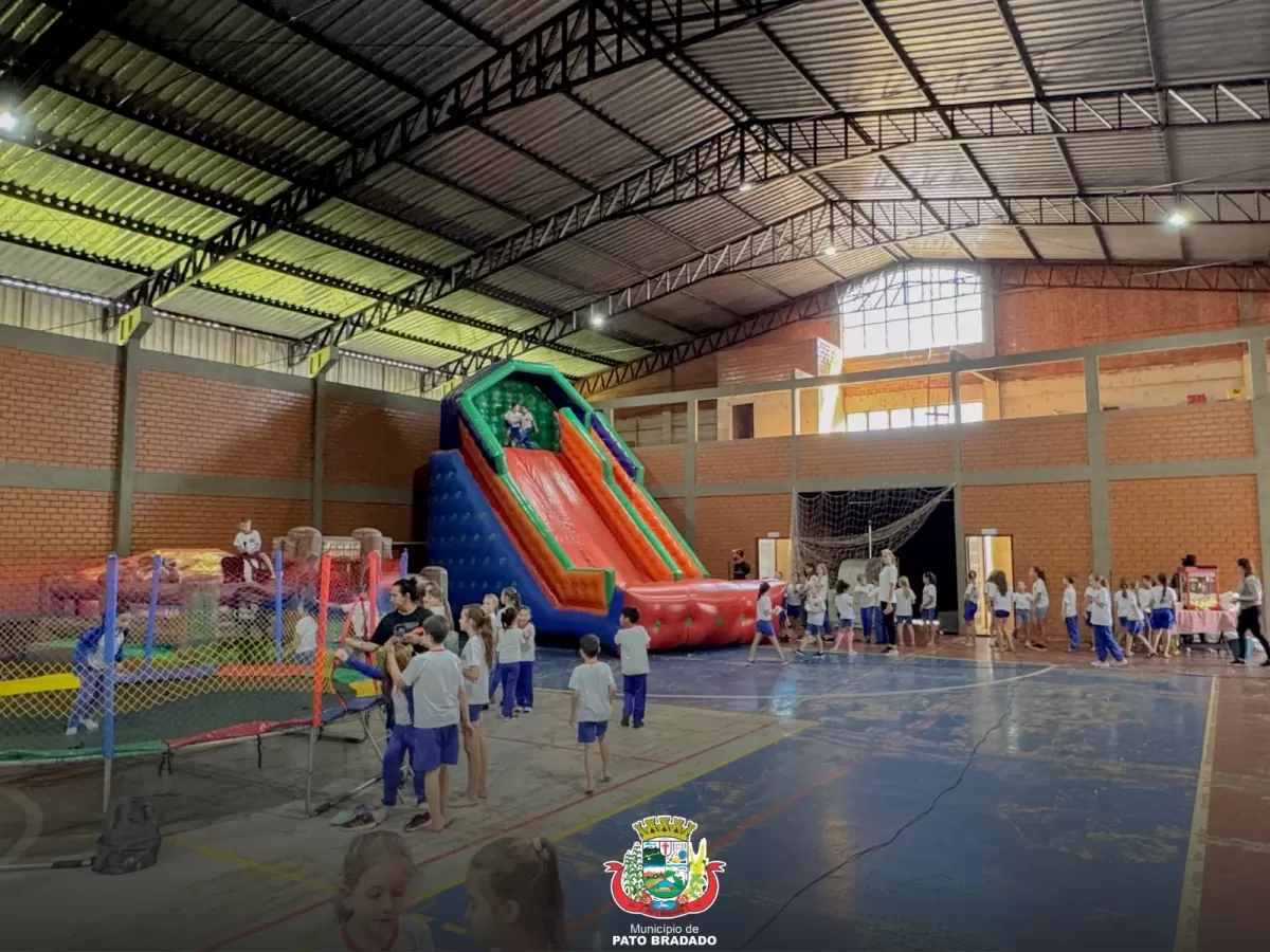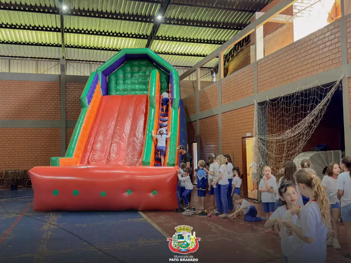 Na tarde do dia 23, os alunos do quarto e quintos anos, que frequentam o período integral, participaram de uma série de atividades recreativas, incluindo brinquedos infláveis. Essas atividades foram projetadas para proporcionar um momento de descontração e celebração, permitindo que os alunos desfrutassem de suas conquistas de forma lúdica.
