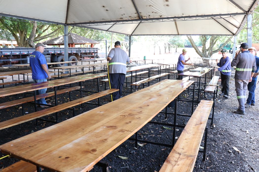 Prefeito Leomar Rohden, o Mano, vice John Nodari, presidente da Comissão Central Organizadora (CCO), secretário de Planejamento, Lucas Blatt acompanham as ações finais executadas por servidores públicos, entidades parceiras, integrantes da CCO, entre outros envolvidos.