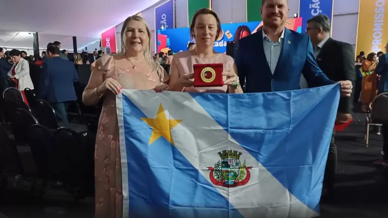 O selo foi entregue na segunda-feira (23), em Brasília, à prefeita em exercício, Simoni Tornquist, secretária de Educação e Cultura, Cristiane Bonatto e secretário de Administração, Lucas Blatt.