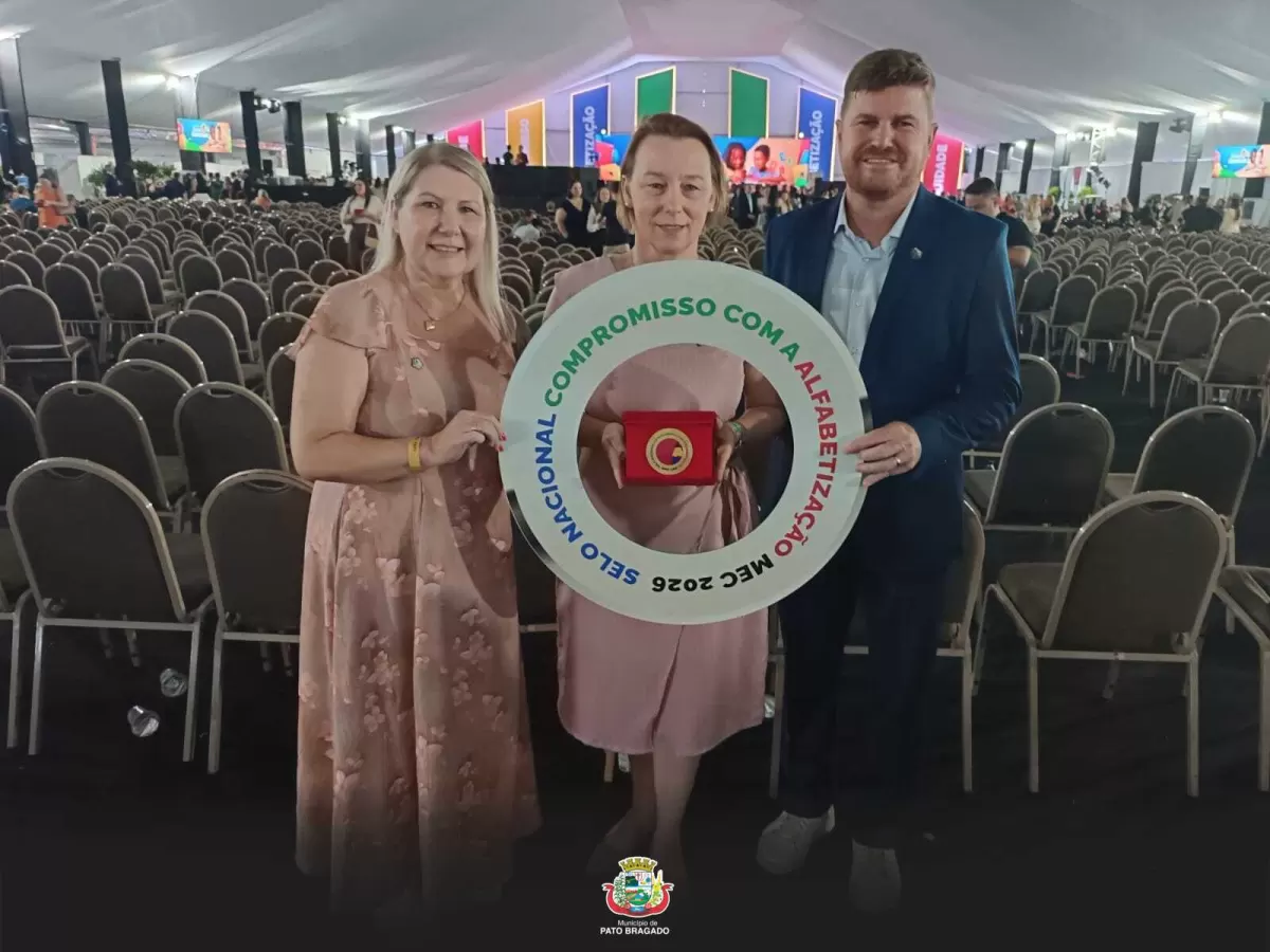 O município de Pato Bragado voltou a conquistar nota máxima em alfabetização e garantiu o Selo Ouro do Ministério da Educação (MEC). O reconhecimento destaca o trabalho desenvolvido pela Secretaria de Educação na alfabetização das crianças e os avanços obtidos ao longo do ano, em consonância com as metas do Plano Nacional de Educação (PNE) e do Compromisso Nacional Criança Alfabetizada (CNCA).