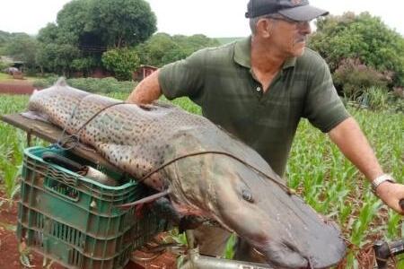 Pescador de Guaíra captura peixe com cerca de 40 quilos no Rio Paraná