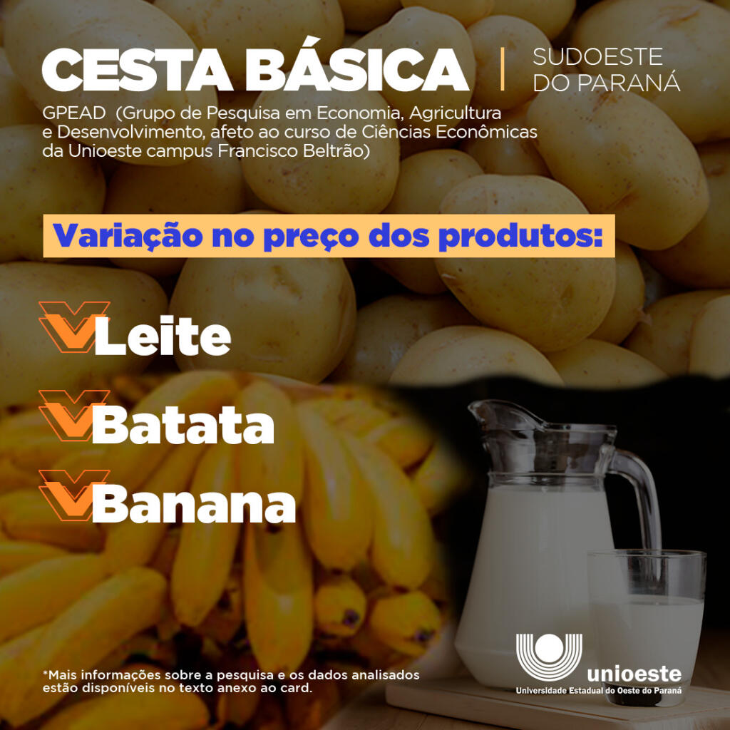 Os produtos que apresentaram maior queda foram o leite (-12,12%); a batata (-8,80%) e a banana (-6,90%). De acordo com os pesquisadores, a queda no valor do leite, da batata e da banana foi o que mais impactou no preço da cesta básica e o aumento da margarina e do feijão impediu que a queda fosse maior. Os itens da cesta básica que mais apresentaram aumento foram a margarina (34,81%); o feijão (14,96%) e o arroz (9,70%),