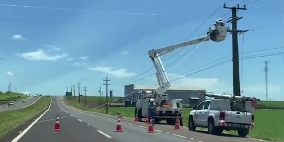 As pistas de rolamento da BR-277 estão bloqueadas neste momento no Km 601, para a Copel transladar um cabo de energia de um lado para o outro.