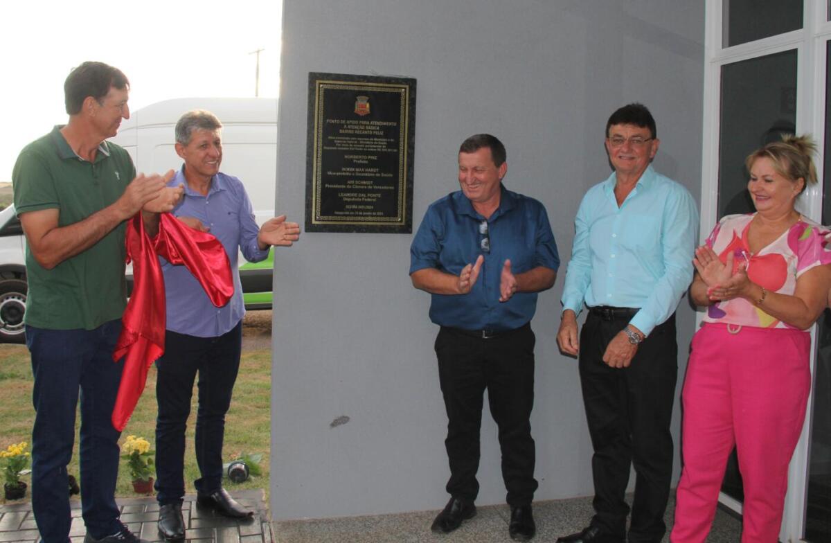 A Prefeitura de Nova Santa Rosa, através da Secretaria de Saúde, inaugurou na sexta-feira (26) o Ponto de Apoio para Atendimento à Atenção Básica, no bairro Recanto Feliz, conhecido como mutirão. A obra foi executada com recursos do município e do Governo Federal (Ministério da Saúde), por meio de emenda parlamentar da deputada Leandre Dal Ponte (atual secretária de Estado da Secretaria da Mulher, Igualdade Racial e Pessoa Idosa), na ordem de R$ 269.351,86.