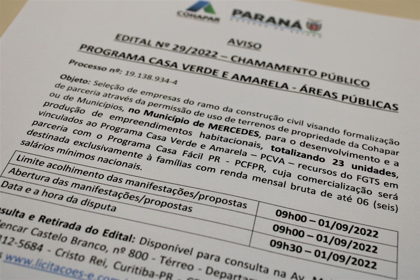 O edital de chamamento público foi publicado recentemente para empresas do ramo da construção civil visando à construção das residências. As empresas interessadas nas obras têm até o dia 1º de setembro para apresentar as propostas.