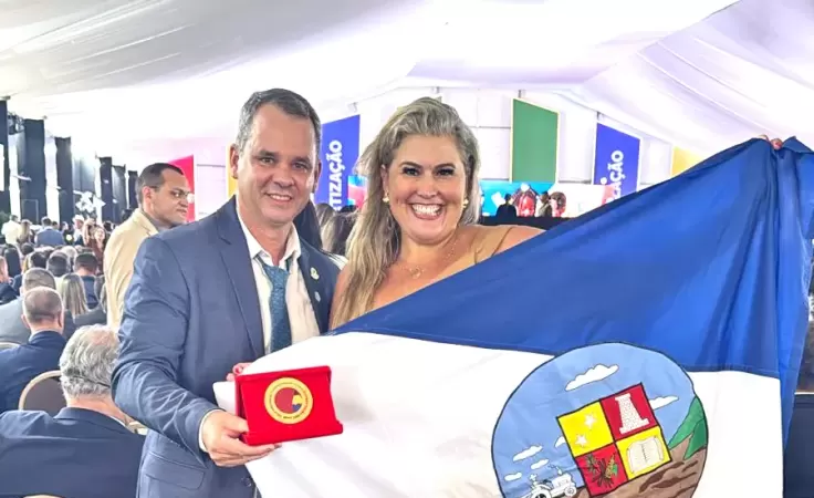 O prefeito de César Seidel (Canela) e a secretária municipal de Educação, Franciele Becker, estiveram em Brasília para participar da cerimônia oficial de entrega do Selo Ouro – Selo Nacional Compromisso com a Alfabetização – Edição 2025.