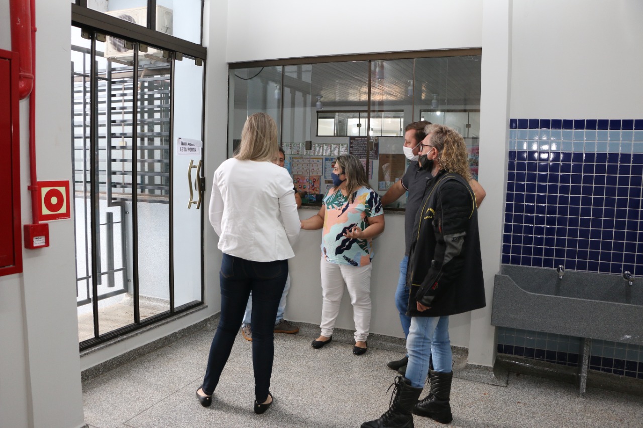 Na manhã de ontem (18), a secretária municipal de Educação e Cultura, Juliana Schwaab, juntamente com o fiscal de obras, engenheiro civil Alcir Martins Vianna Junior, e o secretário de Planejamento, Eduardo Demenighi, efetuaram uma nova vistoria nas instalações e constataram inconsistências como vazamentos na tubulação de água dos banheiros, infiltrações nas paredes e deslocamento de calhas e do forro.