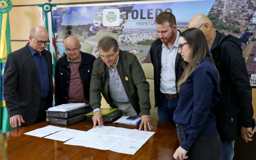 Em ato realizado na sala de reuniões da Prefeitura de Toledo, o prefeito Beto Lunitti assinou a assinatura da documentação permitindo a implantação do Centro Industrial Arno Donaduzzi, a primeira área industrial do Biopark. O evento aconteceu nesta quarta-feira (13) e contou com a presença de diversos secretários e servidores municipais e do gerente de Marketing e Negócios do Biopark, Paulo Almeida. A primeira fase era mista e este novo zoneamento permite a instalação de indústrias e comércio.
