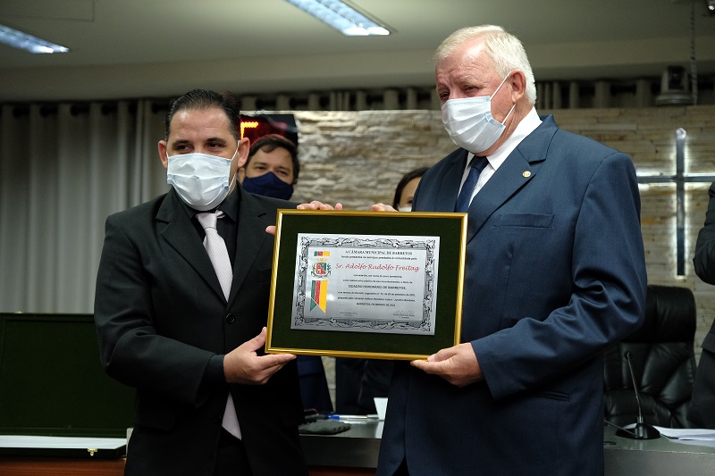 O Projeto de Decreto Legislativo 13/2021, autoria do Vereador Adilson Bandeira Júnior, foi aprovado por unanimidade na casa de leites da cidade. “Seu Adolfo é uma pessoa muito querida, humilde e simples. Essa simplicidade conquista a todos. Enquanto líder de uma empresa tão comprometida e séria como a Sicredi Aliança, só temos que parabenizá-lo e agradecer. Essa é uma forma de retribuir tudo que ele tem feito por Barretos, por olhar com atenção à nossa cidade e nos escolher. Ter o Sicredi em Barretos é motivo de orgulho e poder lhe entregar esse título me deixa muito feliz”, disse, Adilson.