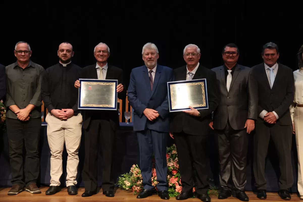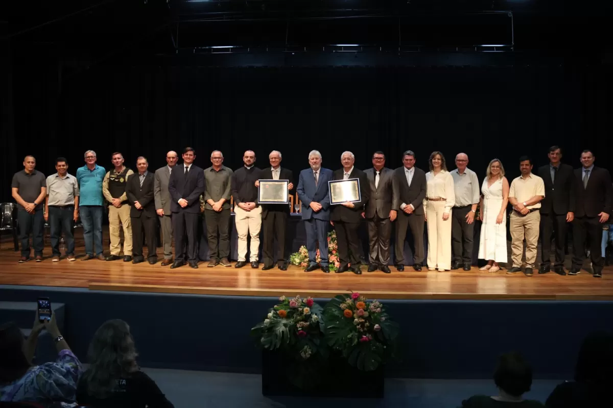 A noite de quarta-feira (22) foi marcada por reconhecimento e emoção em Nova Santa Rosa, com a realização da cerimônia de entrega de títulos honoríficos ao professor Elio Migliorança e ao padre Lucas Sebastião Schwarz no Teatro Municipal Gustavo Fischer. O evento reuniu autoridades, comunidade e familiares dos homenageados, destacando trajetórias que contribuíram significativamente para o desenvolvimento do município.