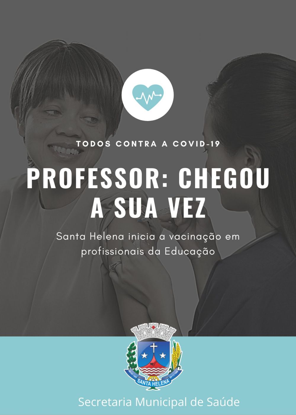A Vigilância Epidemiológica receberá, nesta quinta-feira (13), 100 doses da vacina AstraZeneca, destinadas à primeira fase da imunização de todos os profissionais de Educação do Município de Santa Helena – rede municipal, estadual, particular e APAE – e, imediatamente, iniciará a vacinação da classe no ponto de táxis da Rodoviária Municipal, das 17 às 19 horas.