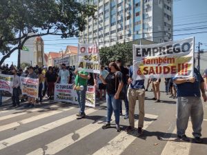 Trabalhadores do setor de eventos e gastronomia de Foz do Iguaçu promoveram uma manifestação na manhã desta segunda-feira (22) em frente à prefeitura.