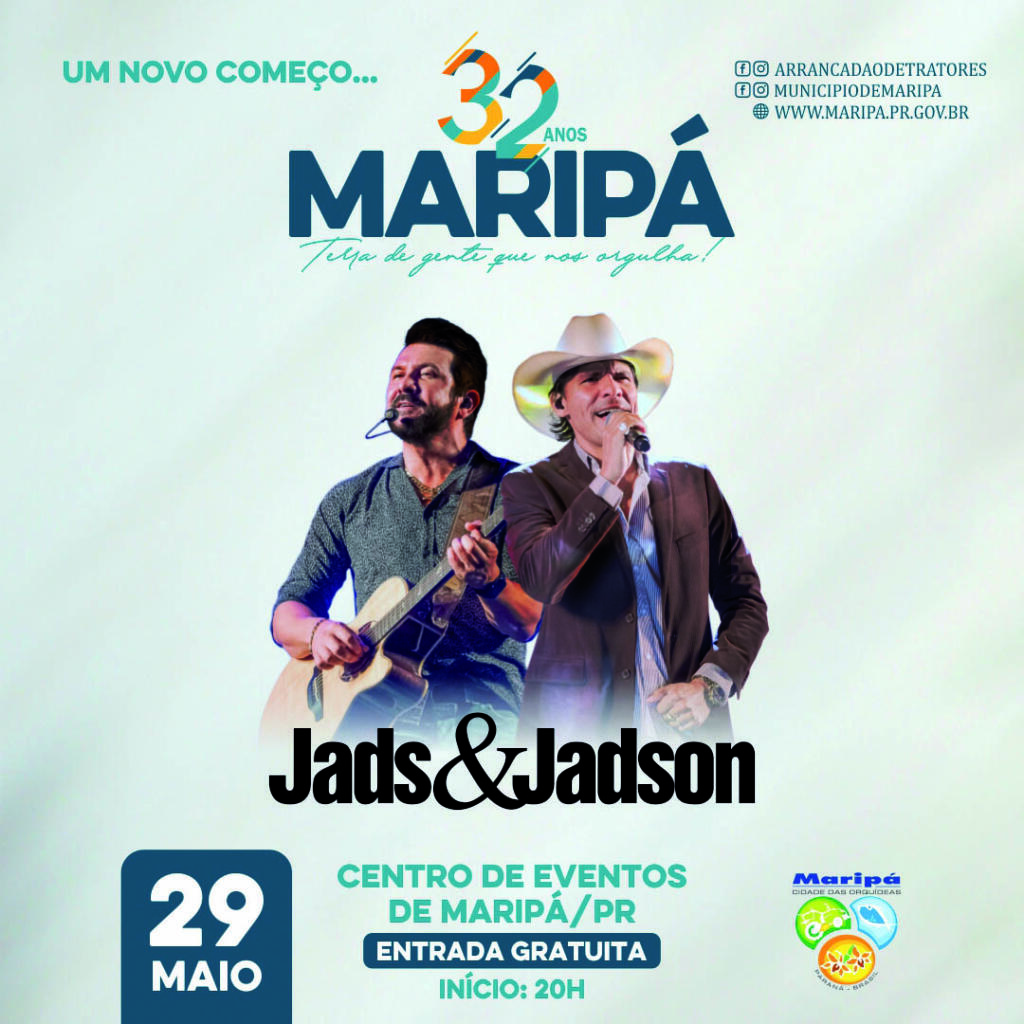 A programação alusiva ao 32º aniversário de Maripá acontece de hoje (27) até domingo (29), no Centro de Eventos, e contará com eventos gastronômicos, show com Jads & Jadson, Feira de Flores entre outros, todos com entrada gratuita.