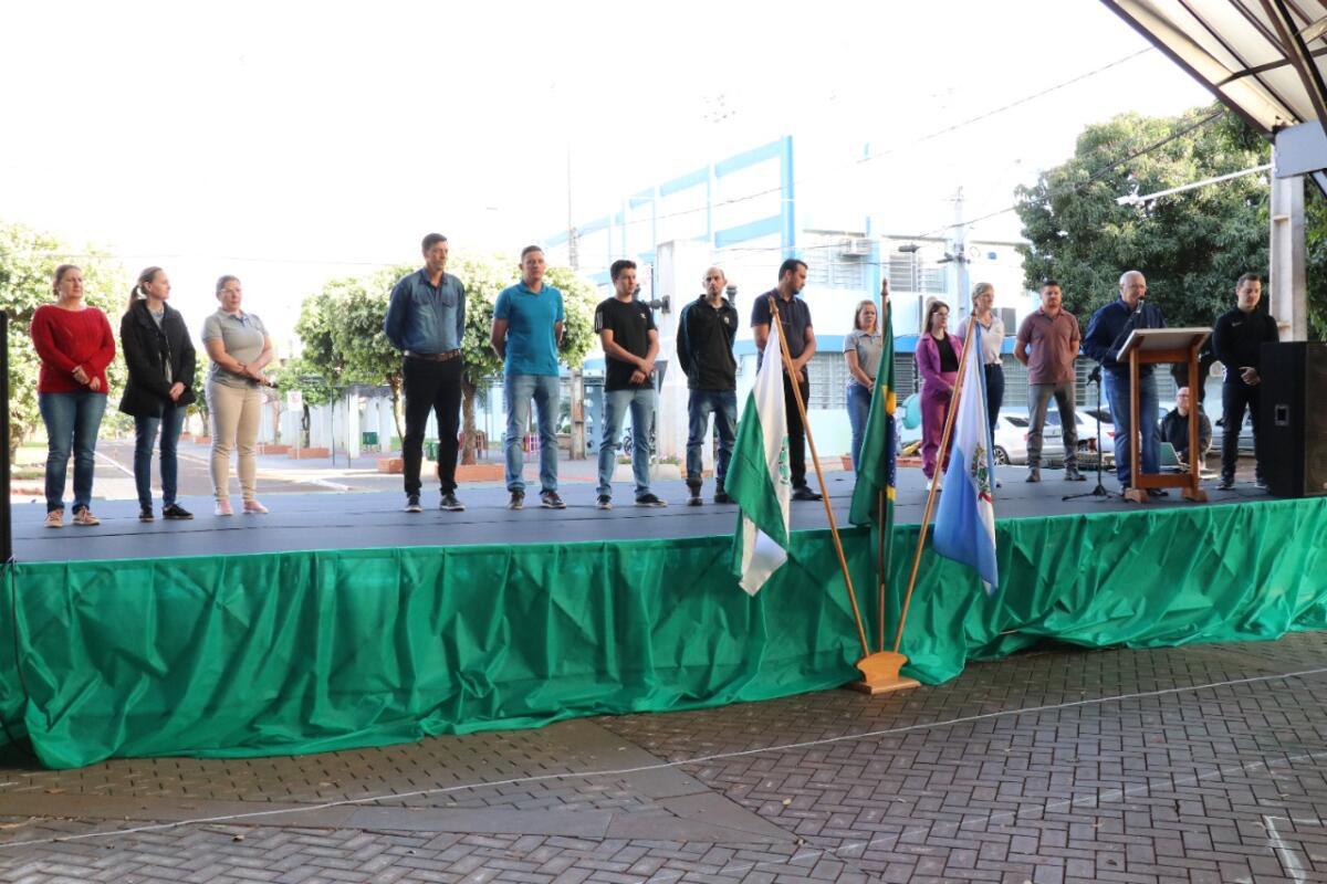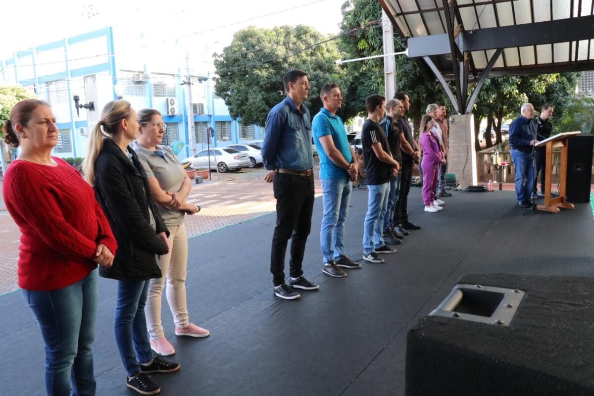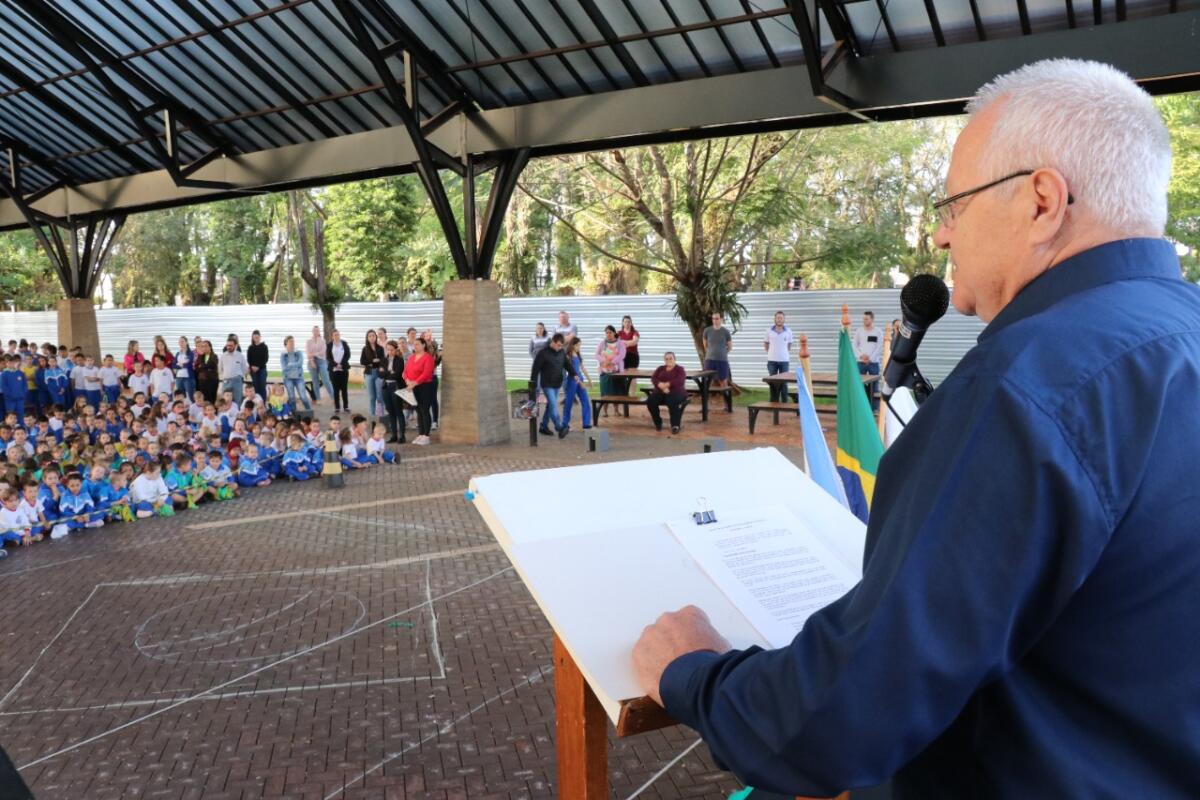 Prefeito Leomar Rohden, o Mano, vice John Nodari, presidente da câmara de vereadores, Ademir Kochenborger, o Xaropinho, secretária de Educação e Cultura, Cristiane Bonatto, diretoras dos educandários, Carine Schmidtke e Nadir Thomas, pastor Delmar Kopsell, além dos demais secretários e vereadores, integraram a ocasião ao lado da comunidade escolar.