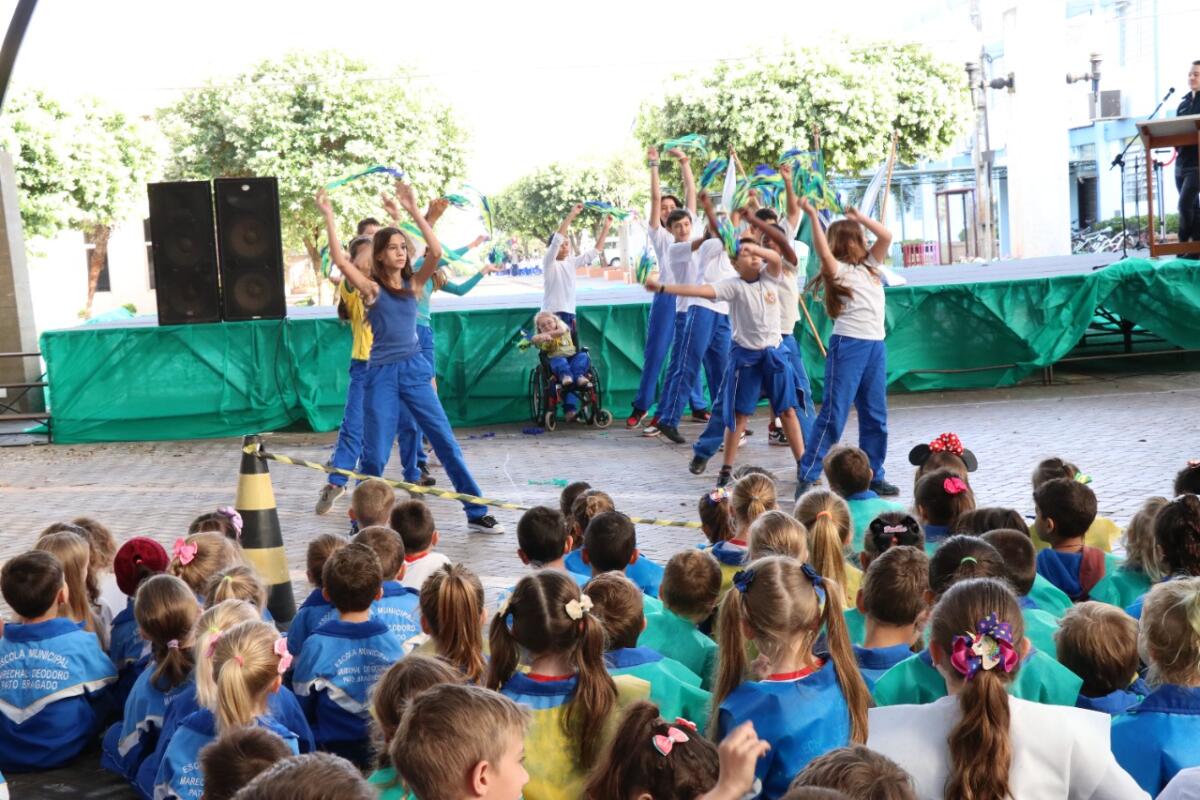 Com hasteamento das bandeiras (Brasil, Paraná e Pato Bragado) e diversas apresentações culturais de patriotismo, a Secretaria de Educação e Cultura e a Escola Municipal Marechal Deodoro e Colégio Estadual de Pato Bragado deram início, na manhã desta quinta-feira (1º), na Rua Coberta, à programação dos 200 anos da Independência do Brasil.