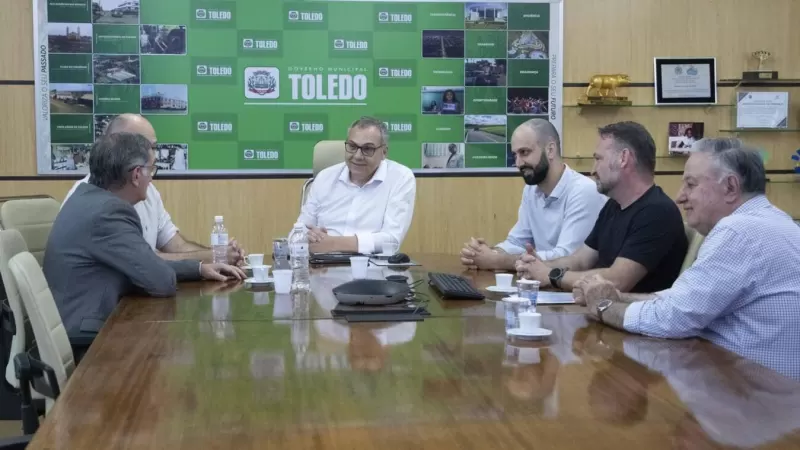 Os empresários Roberto Abia, Jean Paul Brandalise e Daniel Luiz Bortolotto se reuniram na quarta-feira (3) com o prefeito Mario Costenaro, no Gabinete da Prefeitura de Toledo, para apresentar o modelo de uma nova escola pautada na educação personalizada. O projeto está sendo implantado em Toledo e as matrículas estão abertas, com as aulas tendo início em fevereiro de 2026. Serão 80 vagas nesta primeira etapa, conforme explicaram os empresários. O secretário da Administração, Marcelo Marques, e o chefe de Gabinete, Reinaldo Sales, também participaram do encontro.