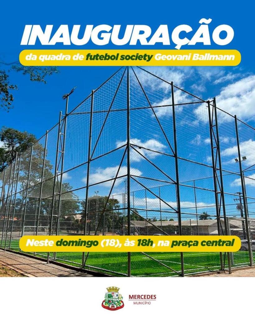 Os mercedenses irão contar com mais um espaço de esporte e lazer. Neste domingo (18), às 18 horas, na Praça Central, será inaugurada a quadra de futebol society Geovani Ballmann, que recebeu investimento de R$ 400 mil.