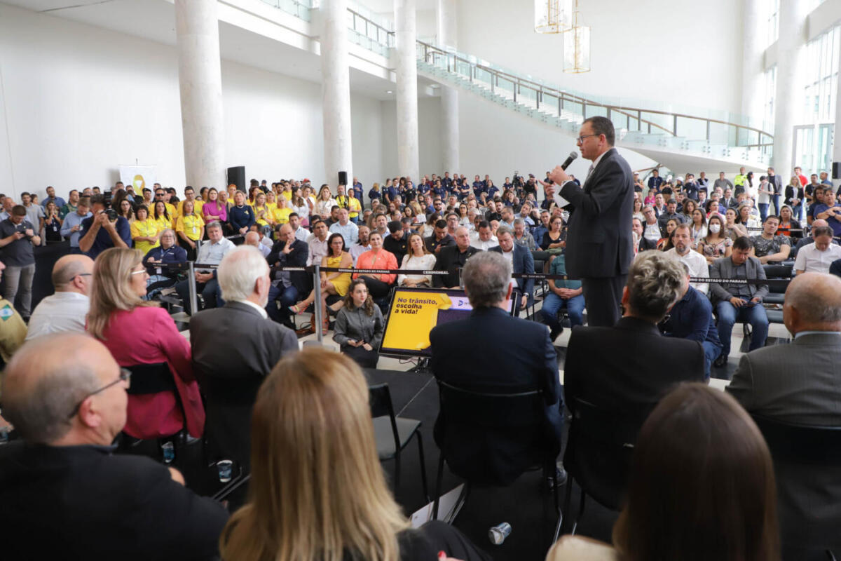 O prefeito de Quatro Pontes, João Laufer, assinou na quarta-feira (3) a ordem de serviço para execução de serviços de engenharia de sinalização viária urbana durante evento no Palácio Iguaçu, em Curitiba. O investimento será realizado pelo Governo do Estado, por meio do Detran/PR, em 46 Municípios. O montante chega a R$ 11,8 milhões somente para o primeiro semestre deste ano. Para Quatro Pontes foi destinado R$ 229.732,31. Do montante, R$ 164.301,82 à pintura de faixas (sinalização horizontal) e R$ 65.430,48 à instalação de placas de trânsito (sinalização vertical), contemplando quase todas as ruas do município.