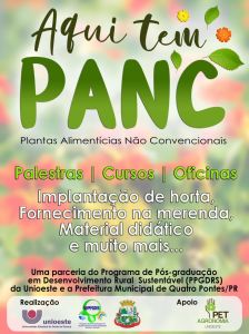 A fim de difundir conhecimento a respeito das plantas alimentícias não convencionais, conhecidas como PANC, o projeto de extensão “Aqui tem PANC!” será desenvolvido em Quatro Pontes durante o ano de 2021. A parceria foi firmada entre o Programa de Pós-graduação em Desenvolvimento Rural Sustentável (PPGDRS) da Universidade Estadual do Oeste do Paraná (Unioeste), Embrapa Pantanal e a prefeitura, com o apoio do Programa de Educação Tutorial do curso de Agronomia da Unioeste.