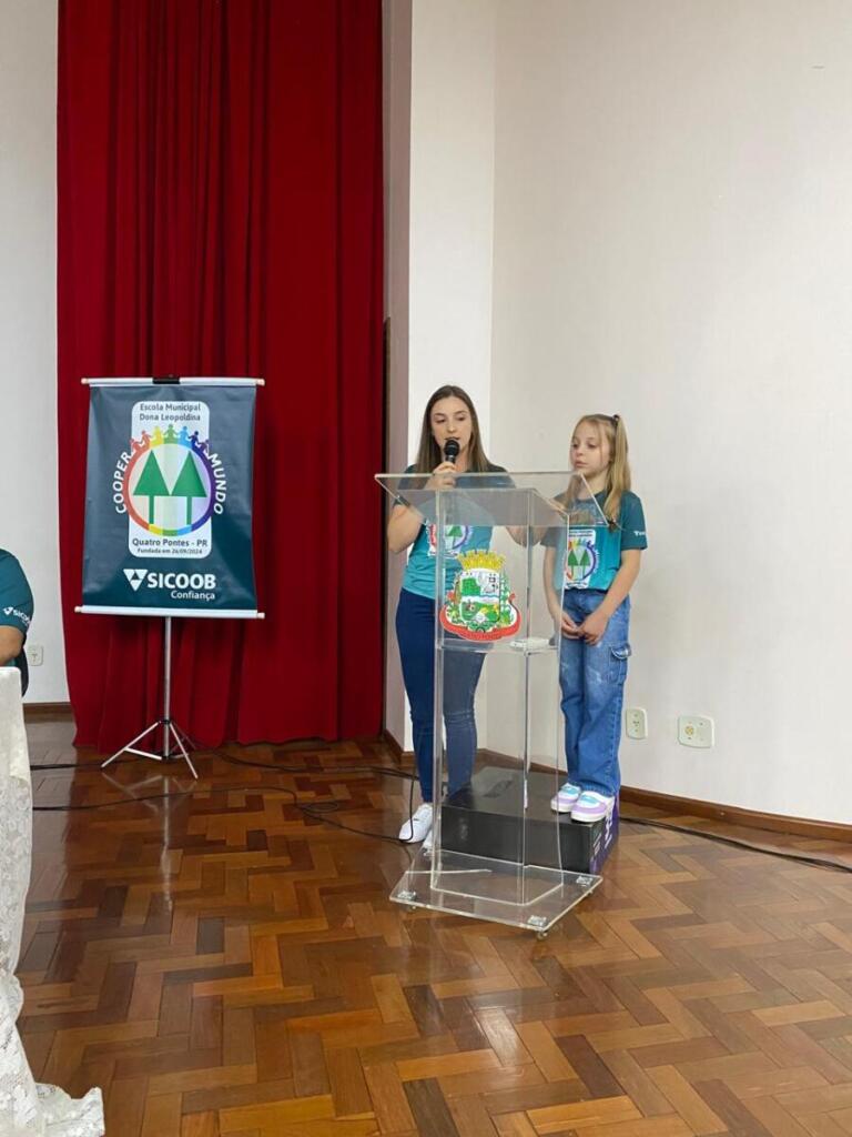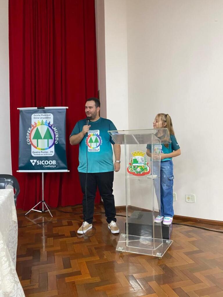 A Agência de Quatro Pontes do Sicoob Confiança, madrinha do projeto, também celebrou a fundação da cooperativa. O gerente da agência, Marcio Orlei em sua fala, destacou: “Capacitar as crianças desde cedo é essencial. A cooperativa mirim oferece a elas uma base sólida, que vai além do ambiente escolar, preparando-as para o mercado de trabalho e para a vida em comunidade.”
