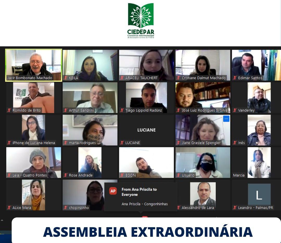 No decorrer da 6ª Assembleia Geral Extraordinária do Consórcio Intermunicipal de Educação e Ensino do Paraná (Ciedepar), realizada via online hoje (29), Quatro Pontes confirmou, por meio da participação da secretária de Educação, Cultura e Esportes, Araceli Basso Tauchert, seu ingresso no Ciedepar, junto com outros cinco municípios. A assembleia foi conduzida pelo presidente Edimar Aparecido Pereira dos Santos.