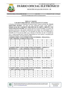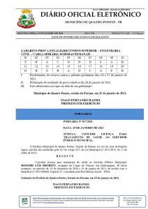 A Prefeitura de Quatro Pontes publicou ontem (25), no Diário Oficial, o gabarito preliminar da prova objetiva do teste seletivo nº 03/2020, de prova escrita, para cadastro de reserva de estagiário para contrato temporário. O edital nº 004/2021 pode ser acessado no endereço www.quatropontes.pr.gov.br.