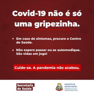 Ela pontua que a maioria dos novos casos é de pessoas que viajaram ou receberam visitas de familiares e/ou amigos de outras regiões. “A nossa equipe não tem o intuito de julgar, mas estamos preocupados com a situação em que o município se encontra. A população deve procurar atendimento médico e realizar a testagem para entendermos como ocorre a propagação do vírus e assim tomarmos as medidas necessárias. Ainda é importante que os munícipes tomem a 1ª dose da vacina e os demais regularizem o esquema vacinal para que a imunização se complete”, enfatiza.