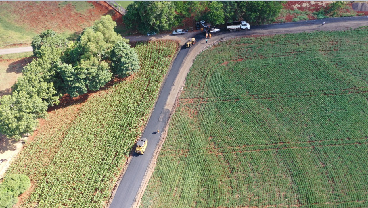 Dos seis trechos rurais programados para receber asfalto, um deles já está pronto. São 1.140 metros na estrada rural sentido à piscina (Recanto do Nasa).
