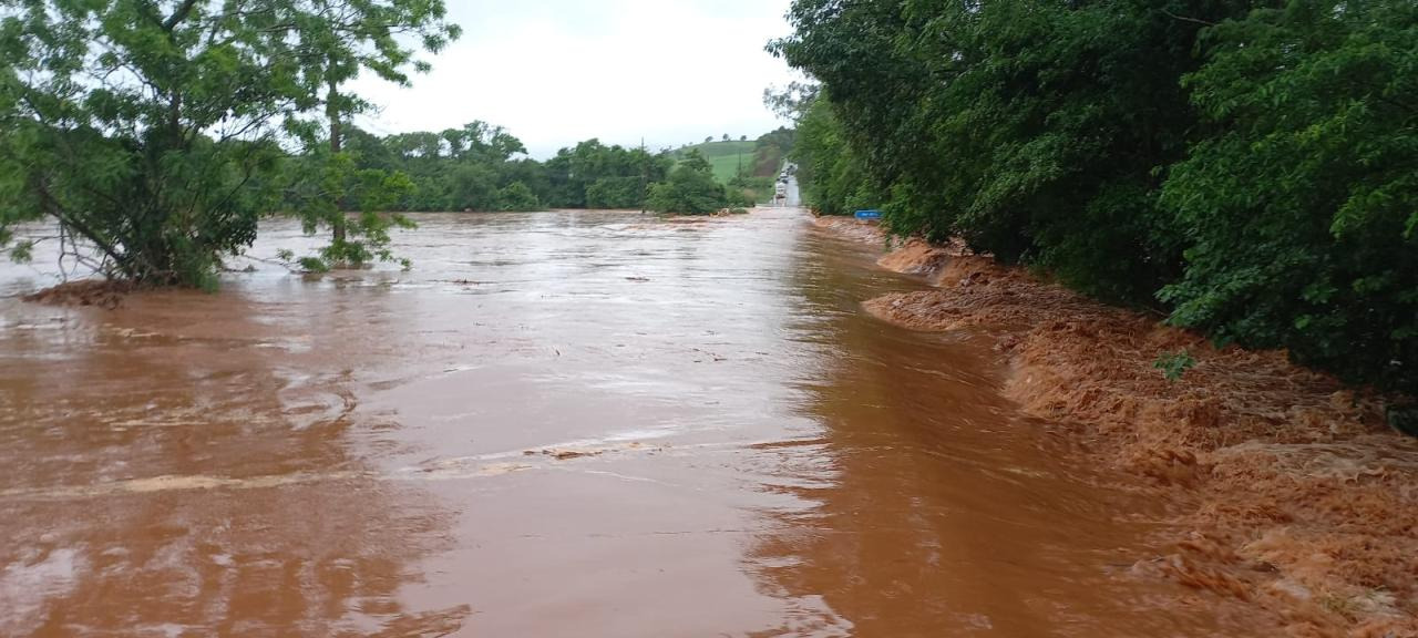 Com isso, a rodovia foi totalmente bloqueada pela água e o trânsito está interrompido neste trecho.