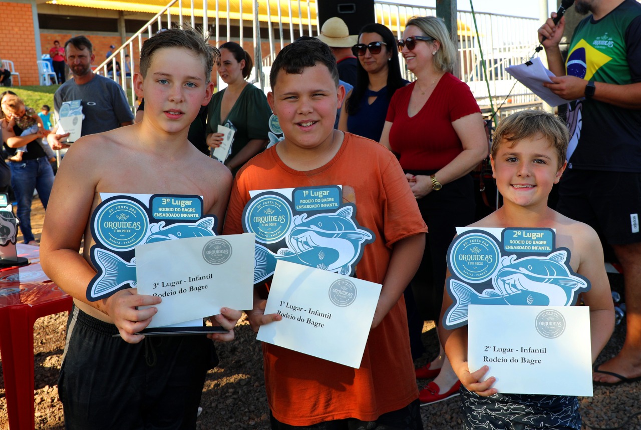 Uma competição um tanto quanto peculiar e muito divertida. Esse é o Rodeio do Bagre Ensaboado realizado na tarde de sábado (27) durante a 22ª Festa das Orquídeas e do Peixe, em Maripá. A competição contou com 45 participantes no total.