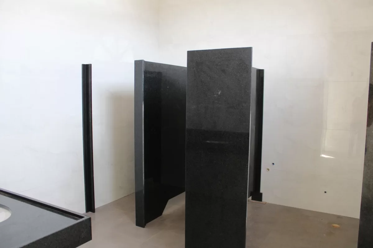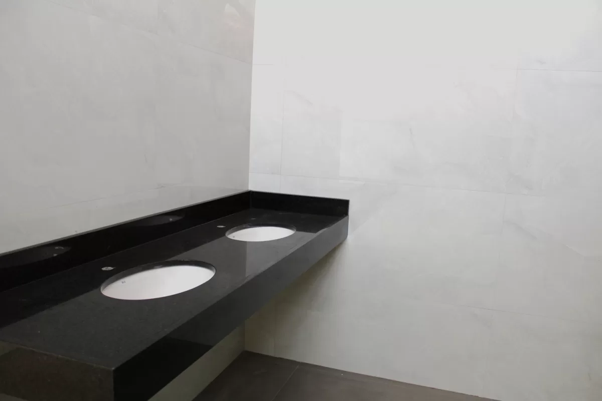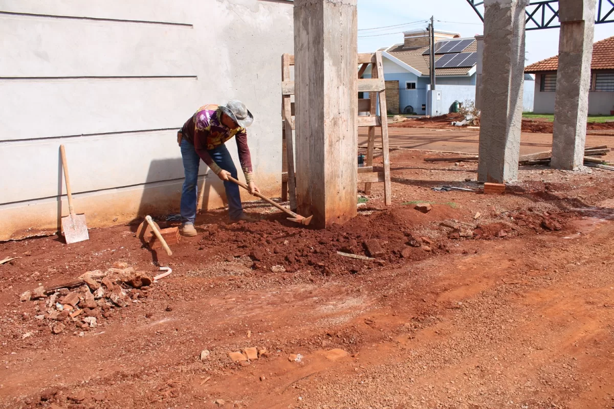 Enquanto isso, a Construtora Positivo, responsável pela execução, também atua em outras frentes: os banheiros e a sala de espera para pacientes da saúde estão recebendo porcelanato e massa corrida, e os muros dos boxes seguem sendo rebocados.