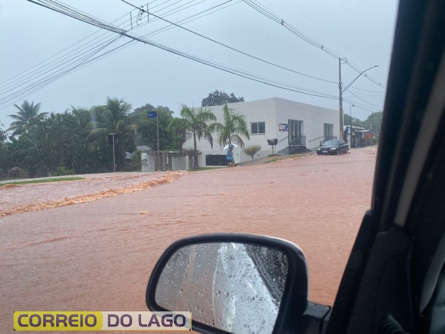 Uma forte chuva atingiu a cidade de Santa Helena na tarde desta segunda-feira (17), causando diversos pontos de alagamentos. A Rua Vereador José Biesdorf foi uma das áreas mais afetadas, com a água invadindo uma distribuidora de bebidas.