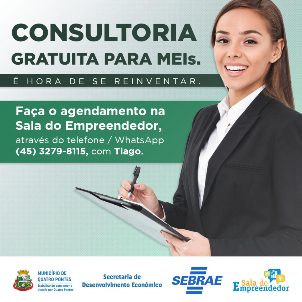 A Sala do Empreendedor de Quatro Pontes, em parceria com o Sebrae, continua com a oferta de consultorias gratuitas aos Microempreendedores Individuais (MEIs), perante atendimento online. O horário deve ser agendado pelas empresas interessadas em aprimorar conhecimentos sobre organização financeira, apuração da lucratividade, rentabilidade, ponto de equilíbrio, formação de preço de venda, planos de negócio, mercado, marketing, planejamento estratégico, entre outros, objetivando melhorar o posicionamento no mercado.