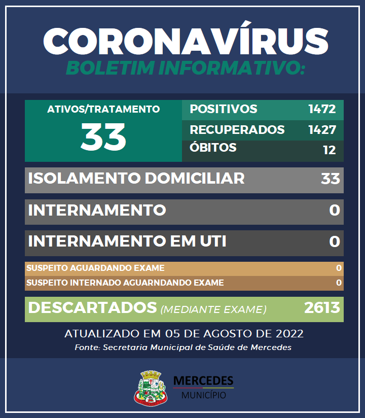 A Secretaria de Saúde de Mercedes alerta para a alta de casos de covid-19, registrada, principalmente, nos últimos dez dias no município. De acordo com o último boletim epidemiológico, publicado nesta sexta-feira (5), Mercedes possui 33 casos ativos de covid-19. Entretanto, não há o registro de casos graves da doença no município.