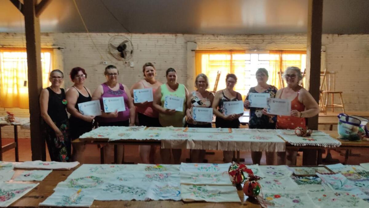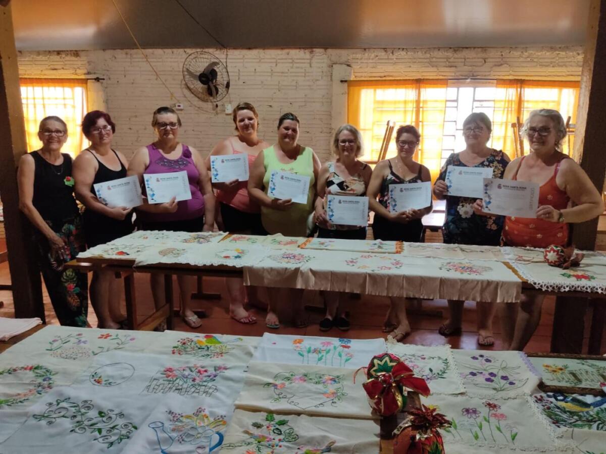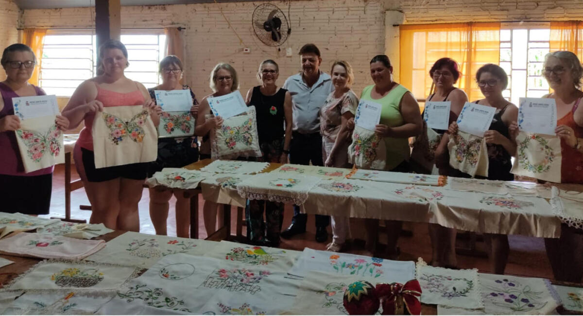 O prefeito, Norberto Pinz; primeira-dama e presidente do Provopar, Ivone Rode Pinz e a diretora da Secretaria de Assistência Social, Haritraut Busse; realizaram recentemente a entrega de certificados para as participantes do Curso de Artesanato Bordado a Mão Livre. O curso foi realizado entre maio a novembro deste ano, tendo sido ministrado pela instrutora, Alice Matzanke Eisen.